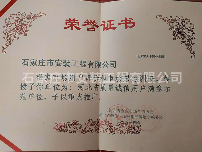 河北省質(zhì)量誠信用戶滿意示范單位